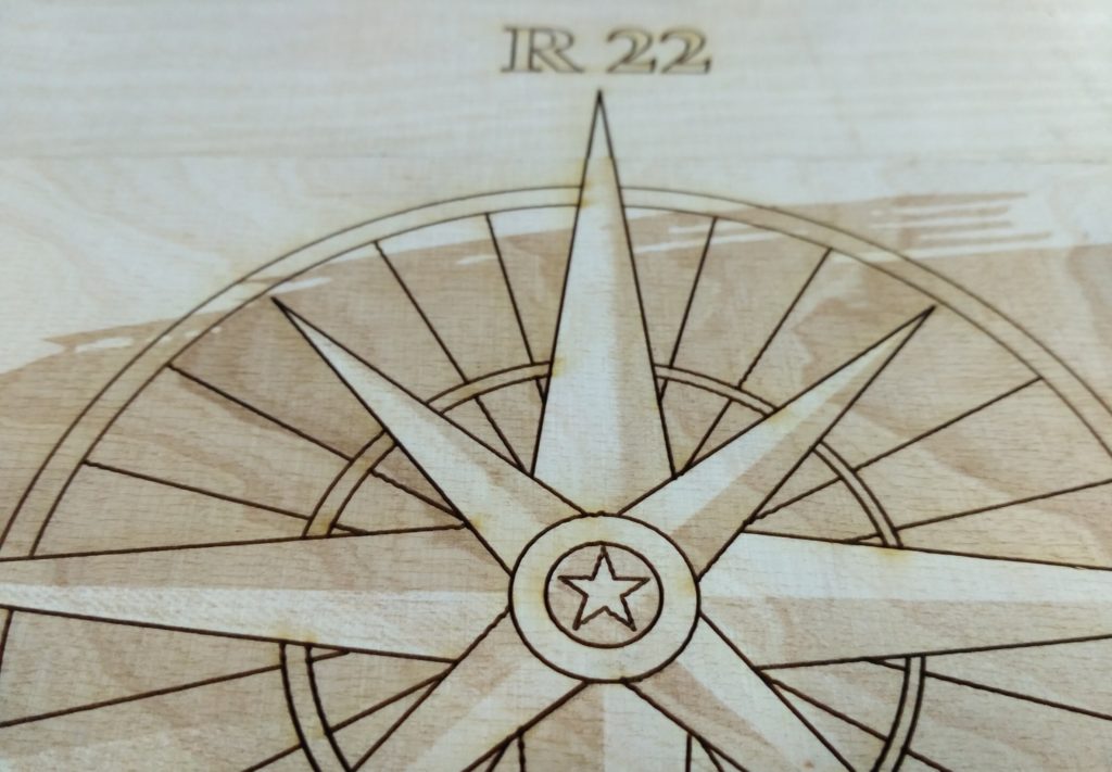 Grawerowanie w sklejce polega na stopniowym wypalaniu wiązką lasera zadanego w programie graficznym wzoru.